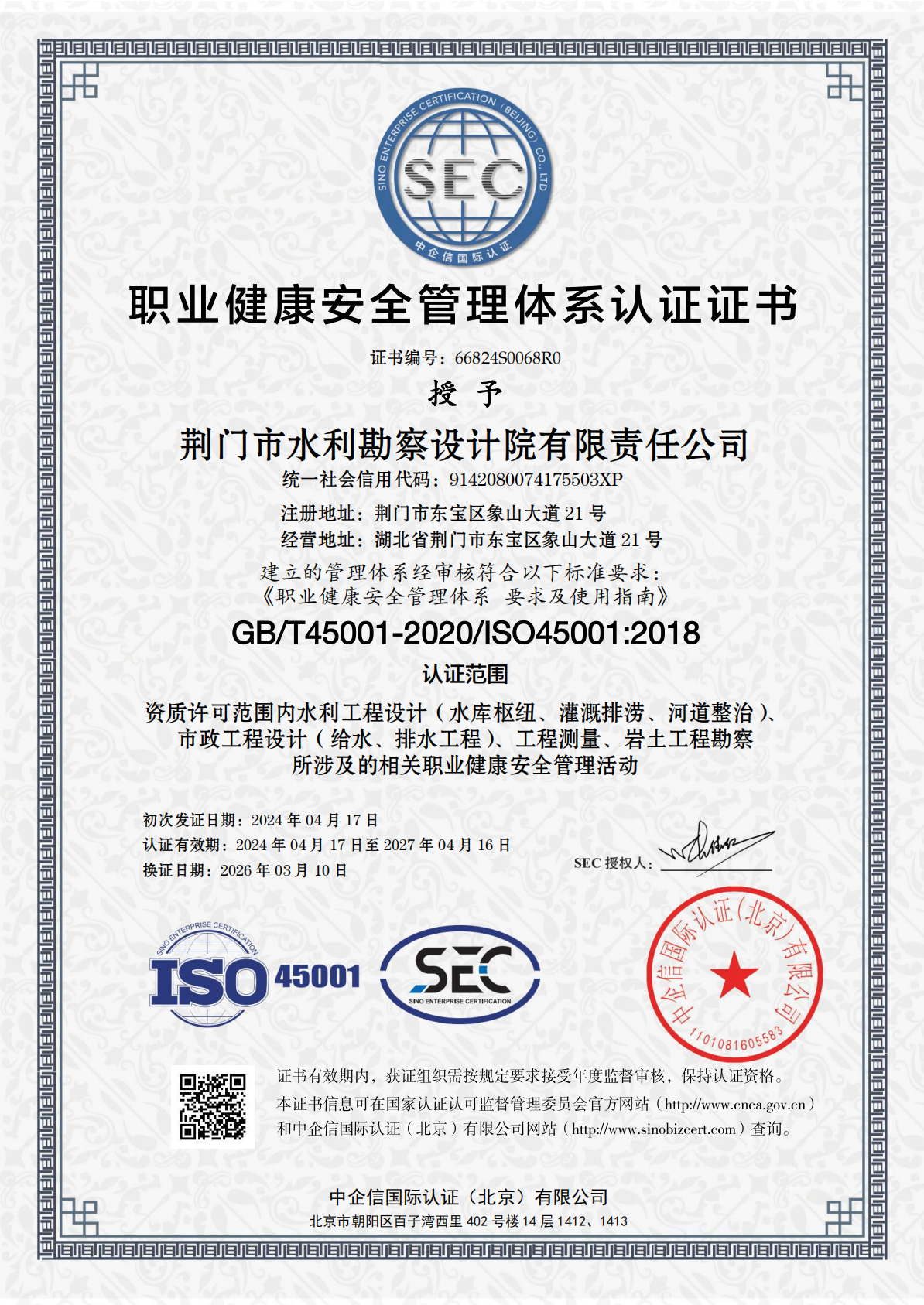 本次認(rèn)證審核以“全面覆蓋、嚴(yán)格核驗(yàn)、提質(zhì)增效”為目標(biāo),審核專(zhuān)家組通過(guò)查閱資料、座談交流、現(xiàn)場(chǎng)核查等多種方式,對(duì)市政給水排水設(shè)計(jì)、水利工程設(shè)計(jì)、勘察、測(cè)量等全業(yè)務(wù)鏈條,以及生產(chǎn)經(jīng)營(yíng)、安全生產(chǎn)等全流程管理工作進(jìn)行了深度審查。專(zhuān)家組充分肯定公司體系建設(shè)的規(guī)范性與運(yùn)行有效性,并結(jié)合行業(yè)趨勢(shì)提出優(yōu)化建議。