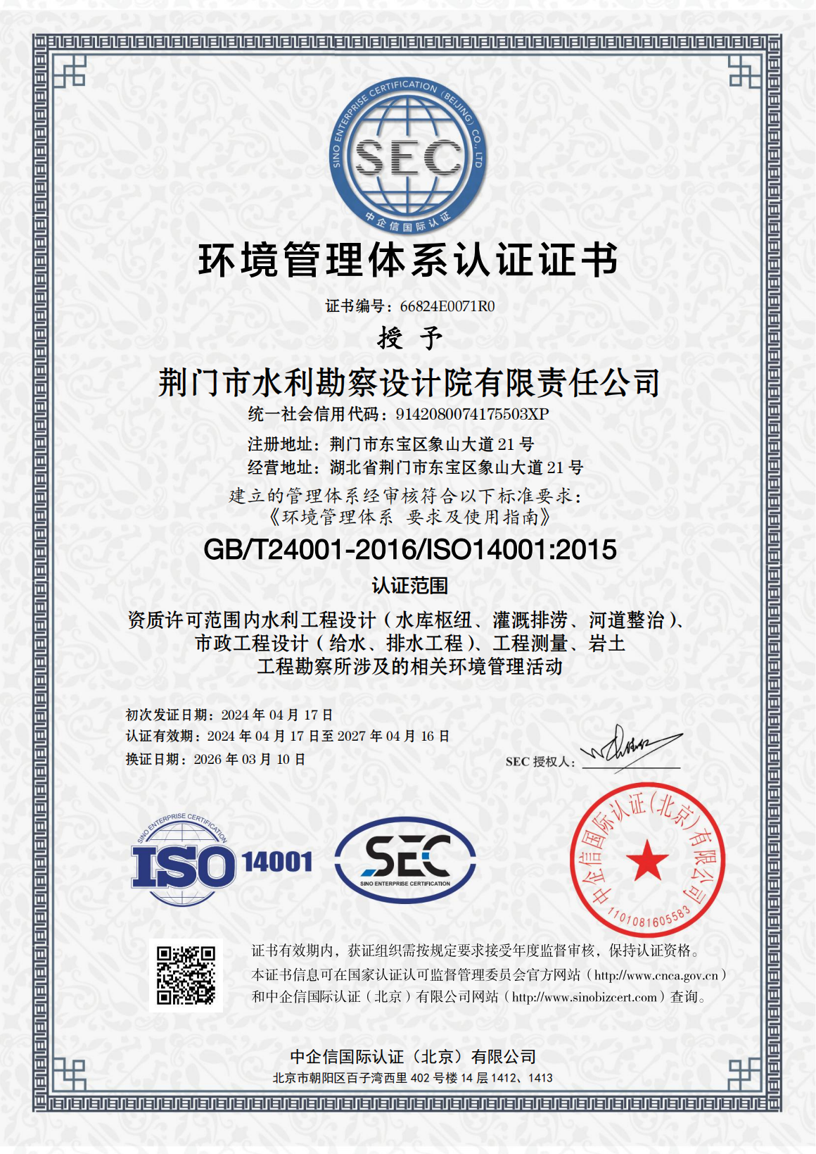 近日,市水務(wù)集團(tuán)下屬子公司荊門(mén)市水利勘察設(shè)計(jì)院有限責(zé)任公司(以下簡(jiǎn)稱(chēng)“水勘院”)順利通過(guò)QES(質(zhì)量、環(huán)境及職業(yè)健康安全)三體系再認(rèn)證審核,并新增市政工程設(shè)計(jì)(給水、排水工程)認(rèn)證范圍,這標(biāo)志著水勘院從水利工程向市政水務(wù)工程領(lǐng)域邁出了實(shí)質(zhì)性的一步。